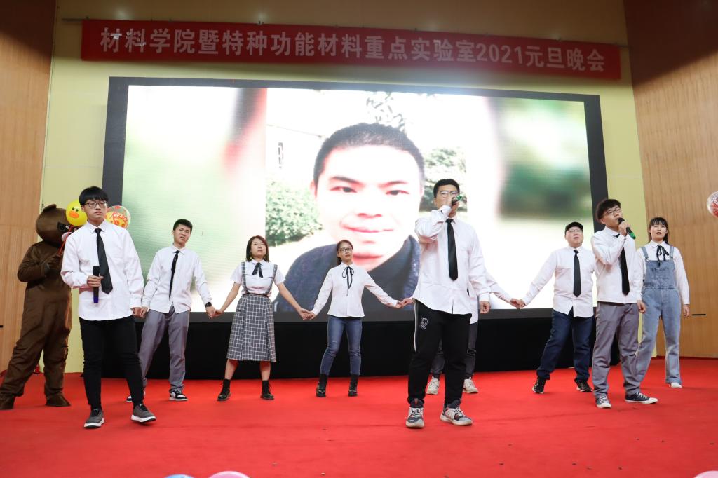 李林松老师课题组和小材宝们共同带来的歌舞《失恋阵线联盟》旋律欢快,让人消散忧虑,焕发生机活力。