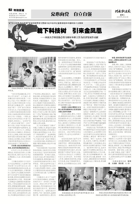 杜祖亮又说:“我的老师、特种功能材料重点实验室的创始人朱自强先生,以及同样为实验室的发展作出决定性贡献的党鸿辛院士,都是老一辈科学家中的典范。他们一生淡泊,不追名,不逐利,不讲享受,用的椅子和洗漱用具十几年没换过,将全部的时间和精力都用在了科研上。他们那种自强不息、追求卓越的科学家精神;艰苦创业、科技报国的爱国情怀;甘为人梯、潜心育人的奉献精神作为一种持久的文化力量,感染着一代代后来人,激励着他们在科技报国的漫漫征途上不断奋进,再创辉煌!”(文章内容有删减)(河南科技报全媒体记者 张传胜 王四典 周仕儒 文/图)