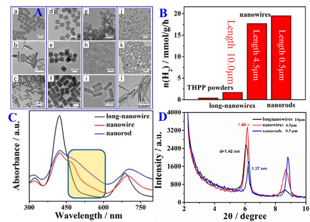 Figure3, images of porphyrin nanomaterials with different shapes and sizes synthesized through the surfactant-assisted cooperative self-assembly method.