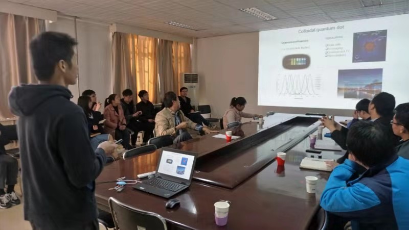 2019年11月21日(星期四)下午,应特种功能材料重点实验室邀请,重庆大学胡龙研究员莅临实验室进行学术交流,并做了题为“高效量子点红外光电器件”的精彩报告。本次报告会由特种功能材料重点实验室特聘教授武四新教授主持,学校相关领域的老师和研究生参加了此次报告会。