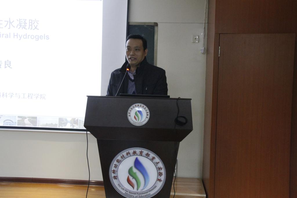 12月23日,应特种功能材料重点实验室邀请,上海市“东方学者”、上海交通大学材料科学与工程学院副院长冯传良教授将莅临我校做了题为“仿生手性水凝胶”的学术报告。本次报告会由实验室副主任白锋教授主持。