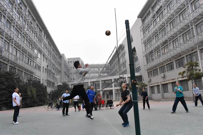 11月9日下午,阳光煦暖,和风轻松,特种功能材料重点实验室大楼后排球场热闹非凡,实验室师生混合排球赛第三阶段比赛在此进行。本阶段两场比赛分别是A组对C组,B组对D组。C组种子选手武四新教授虽出差在外,但另一名实力选手赵伟利教授强势回归,带领本组继续征战,并先下一城。但以杜祖亮教授为核心的A组实力强劲,技战术合理有效,队员发挥稳定,最终以2:1战胜C组。在随后进行的第二场比赛中,B组虽整体实力较弱,但临时引进了几位强大外援,最终战胜D组,取得3分。