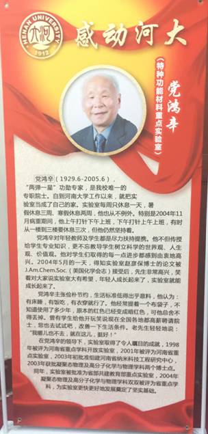 为庆祝建校105周年,深入挖掘改革开放以来学校涌现出的先进典型人物,树立师生身边榜样,学校开展“感动河大”人物评选活动,党鸿辛院士入选。9月25日晚,学校在明伦校区大礼堂举行了隆重的颁奖典礼。