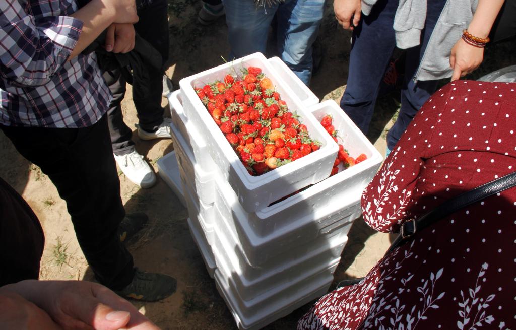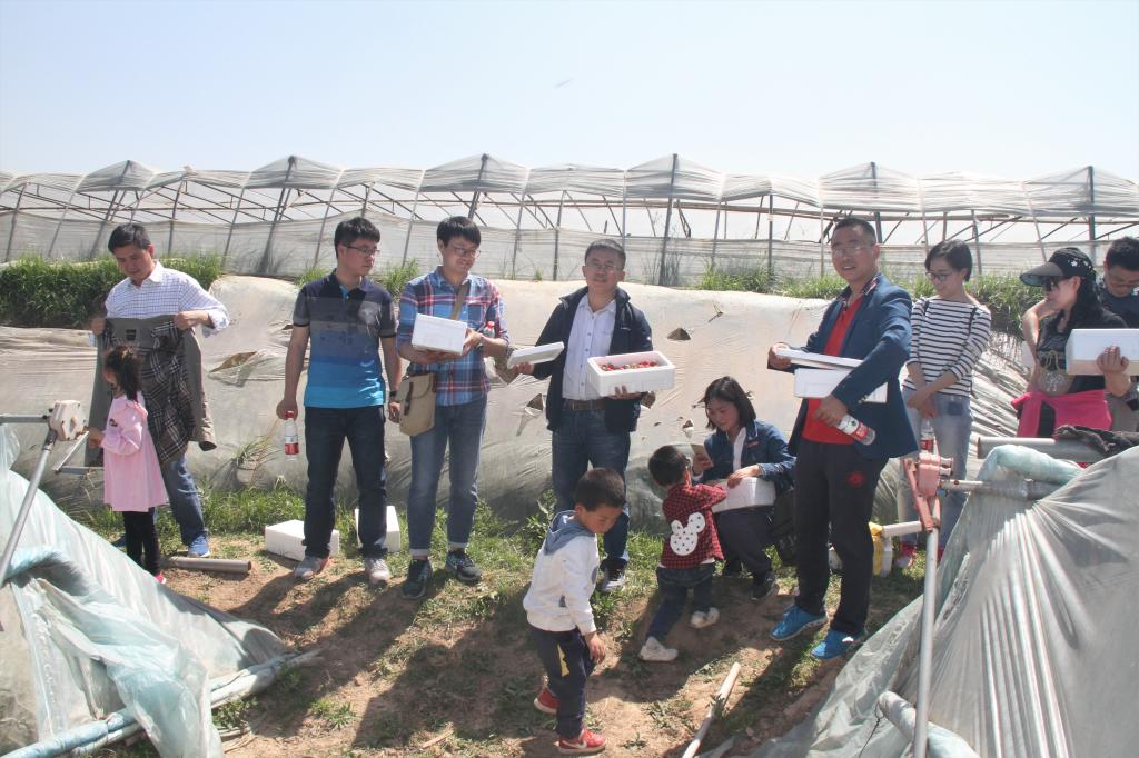 2017年4月28日上午,春风拂面,艳阳高照,特种功能材料重点实验室20多名老师来到中牟雁鸣湖附近的草莓采摘基地,开展“季春寻莓”活动。户外的大好春色早已让老师们兴致勃发,热情高涨,一进草莓地,大家就忙活起来,对红彤彤的草莓“动起手来”,边吃边摘,不亦乐乎。最后,大家虽然汗流浃背,但都收获满满,兴奋之情溢于言表。此次活动,不仅让大家在繁忙的工作中得到片刻的放松,也使大家在“五一”劳动节来临之际感受了一把劳动者的不易与快乐。