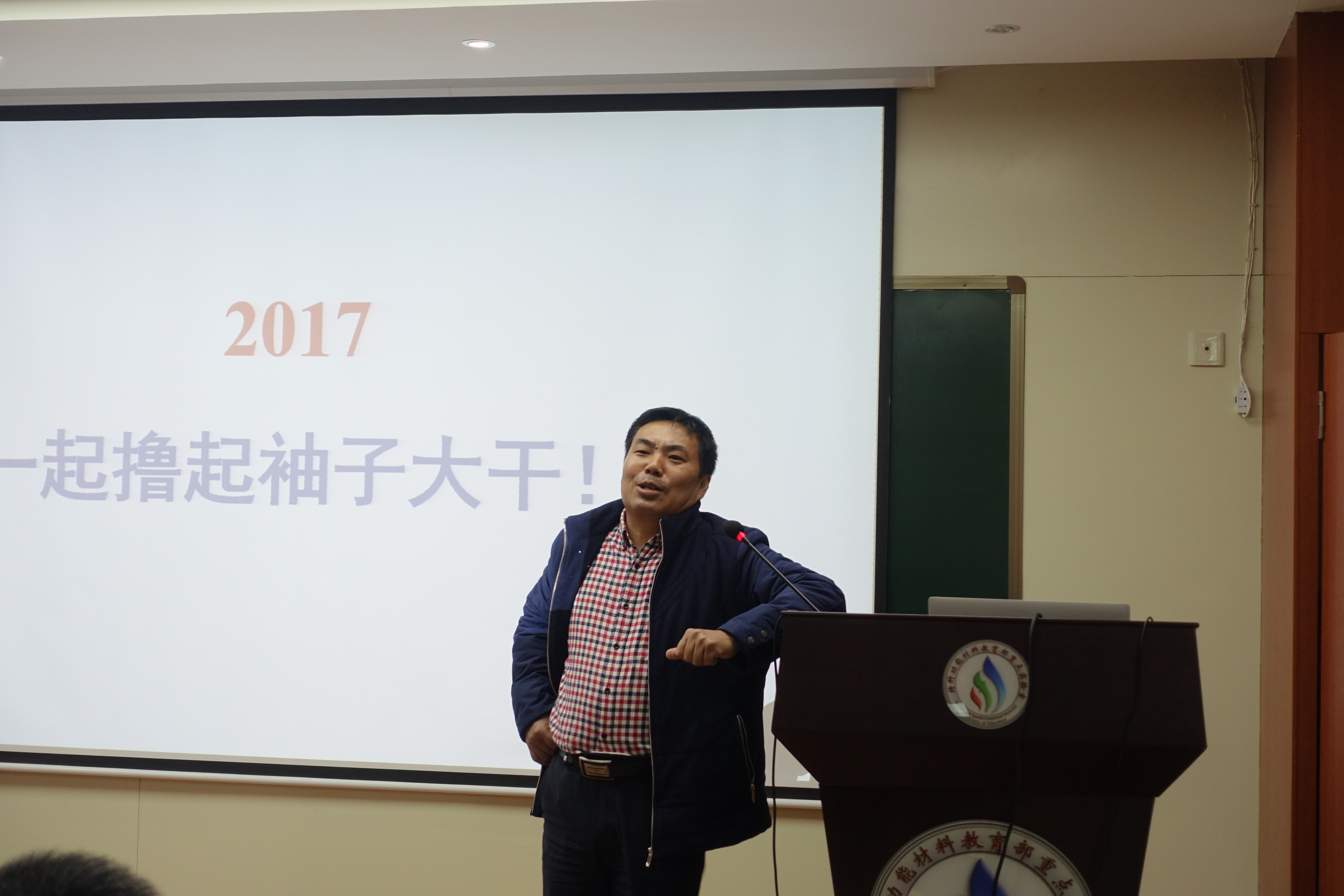 杜祖亮对2017年的工作进行了安排部署,从人才培育、科研项目、标识成果、学术交流、企业合作、平台建设六个方面提出了2017年的任务和目标。他指出,实验室当前的优势在于高端青年队伍不断壮大,平台建设由点而面,首席科学家项目计划顺利实施,形成了两个统一,即“人才培养——团队组建——平台建设”和“标识性成果——高层次人才——特色方向”。另外“捆绑计划”也收到了明显效果,王中林院士、江雷院士、李亚栋院士、刘忠范院士、张振宇教授等学术顶级人物也对实验室提供大力支持。实验室全体人员要共同努力,想方设法把这些优势转化为成果。他强调,2017年工作的两个核心主题是“考核”和“风气”。要制定考核指标和处罚标准,形成制度文件,定期对全体人员进行严格考核。要狠抓作风,从班子工作作风、学风、室风等方面入手,最终形成“拼搏、协作”的良好风气。