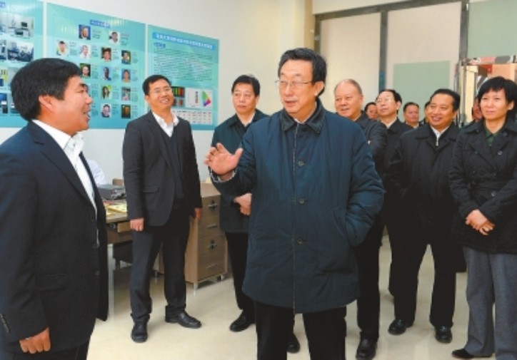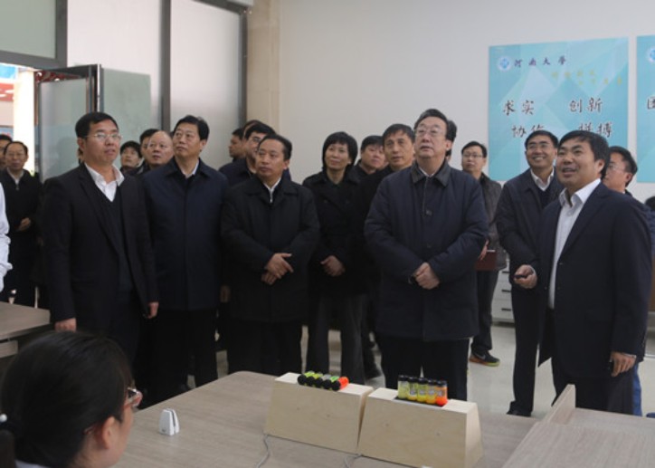 2015年11月12日上午,正在开封市考察工作的河南省委书记、省人大常委会主任郭庚茂来到位于开封市经济技术开发区的德豪光电科技园区,视察我校中原硅谷科技发展研究院的建设情况。开封市市委书记吉炳伟、市长侯红,我校党委书记关爱和、副校长宋纯鹏等陪同视察。