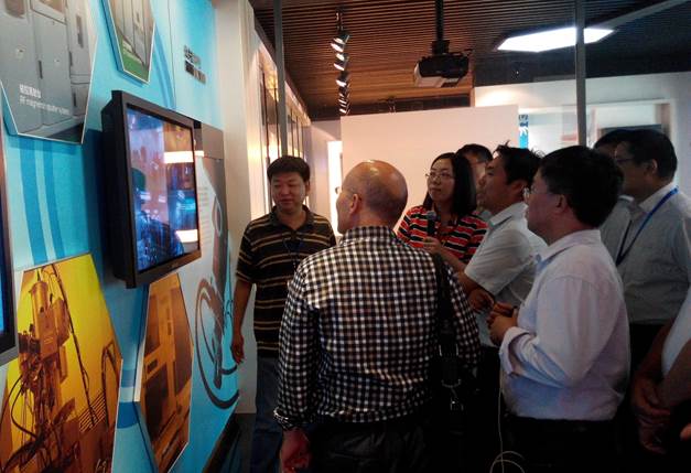 参观完实验室,调研团成员来到由苏州大学、中科院苏州纳米所、中国科技大学、西安交通大学、东南大学协同组建的“国家纳米科技协同创新中心”。在中心一楼展厅,工作人员向调研团介绍了国家纳米科技协同创新中心在政产学研用等方面多方协同的运行情况,并详细讲解了协同创新中心在微纳机电制造智能机器人、高性能大尺寸触摸屏及超薄导光膜、大面积高效长寿命有机OLED器件及照明器具、磁悬浮离心式人工心脏、可控结构吸附材料等方面的科研成就,引起了调研团成员浓厚的兴趣。大家认真观看展板,详细了解中心的科研创新和产业发展等情况,并逐一参观微纳柔性制造、纳米能源材料、纳米光电器件与材料、纳米环保材料、纳米机电制造、纳米药物与医用材料等六个分中心最新的科技成果。