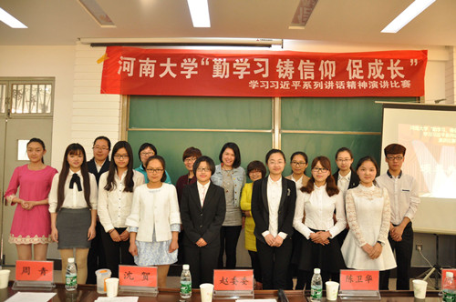 为全面深入学习习近平总书记系列重要讲话及在河南考察调研时的重要讲话精神,4月23日下午,由校团委主办、校学生会承办的“勤学习 铸信仰 促成长”学习习近平系列讲话精神演讲比赛在金明校区数学与统计学院学术报告厅举行。校团委副书记沙莎应邀参加演讲比赛。