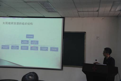 5月26日上午,荷兰能源研究中心吴宇博士受邀来我校特种功能材料重点实验室进行学术交流。报告由实验室副主任白锋教授主持,实验室相关专业教师和学生聆听了报告。吴宇博士介绍了太阳能器件结构和集成研发的相关工作。他主要从事高效n型-硅基异质结(HIT)太阳能电池表面钝化、非晶硅薄膜沉积、器件结构、加工工艺的优化及电池失效分析方面的研究。报告通过形象的语言描述,深入浅出,将太阳能电池的工艺优化及电池分析研究生动的展现在实验室师生面前。使与会的实验室师生受益匪浅。吴宇博士还亲切地和实验室师生进行交流,并回答了师生提出的相关问题。(新闻作者:姚沙沙)