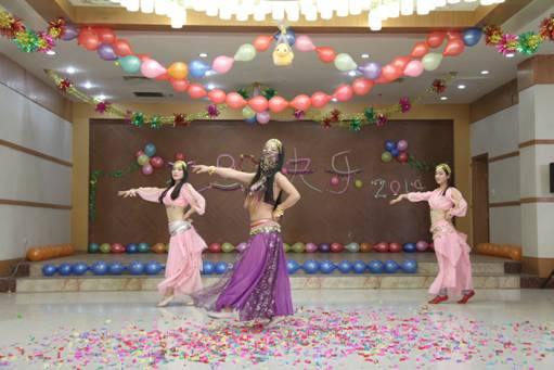 联欢活动丰富多彩,有拔河比赛、肚皮舞、喊数抱团游戏、猜成语游戏、亲子踩气球、民族舞、百变战车游戏以及印度舞。其中拔河比赛在室外进行,三个小组精心组织各自队伍,在凛冽寒风中实验室师生们热情更增,加油声、呐喊声此起彼伏。