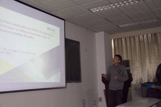 11月4日下午,荷兰能源研究中心(ECN)吴宇博士应特种功能材料重点实验室邀请,在实验室二楼报考厅为师生做了一场“Surface passivation of RF-PECVD deposited α-Si:H layer on different textured n-type CZ nanocrystalline Si wafer”的学术报告。报告由省特聘教授王华主持,实验室的师生参加了报告会。