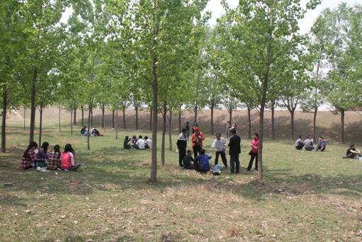 大约11点半左右,在一片绿树成荫的草地,师生围成一圈席地而坐。相互分享食物,一起玩游戏。在老师同学的阵阵欢笑声中,享受着春游的无限乐趣。一直到下午2点,师生们才骑上自行车返校。一路上回味着一天游走过的风景,携带一份好心情而归,即使身体已疲惫,却感到十分的满足、放松。一天的春游结束了,在春天清新温暖的气氛中,师生们变得更加熟悉彼此,团结彼此,在记忆中也增加了共同的美好回忆。(供稿:李欢欢)