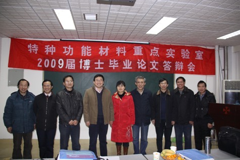 2009年12月17日,特种功能材料重点实验室2009年下半年研究生毕业论文答辩会在实验室二楼会议室举行。