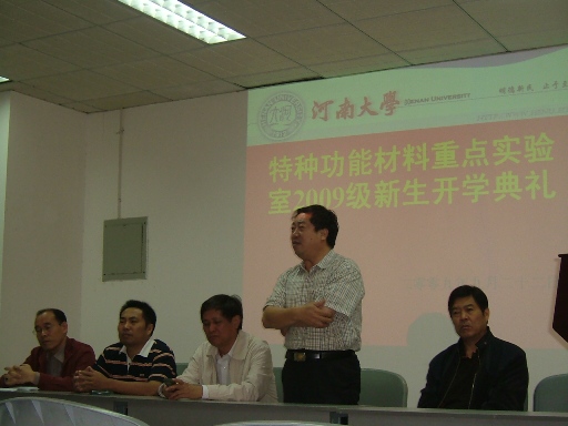 9月22日上午,特种功能材料重点实验室2009级研究生开学典礼在实验室二楼报告厅隆重举行,实验室领导崔元臣、张治军、杜祖亮、吴志申及实验室教师和全体新生出席了开学典礼。典礼由党总支副书记杨建军主持。