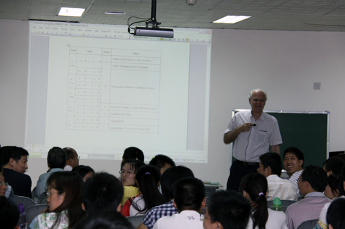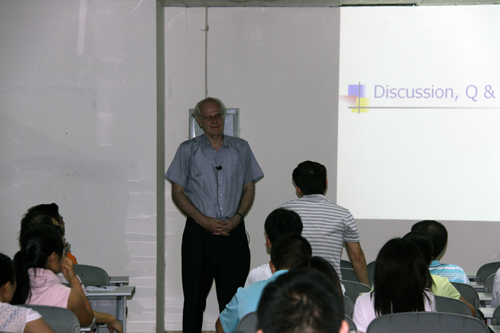在为期一周的报告里,M.A. Van Hove教授首先结合自己的生活和科研经历分析了东西方文化、教育、思维方式的差异,认为我们只有更好地了解西方科学家的思维方式和特点,才能与之开展良好的合作。之后的时间里,M.A. Van Hove教授又就Order of Magnitude and Uncertainty, Optimization Methods in Materials Science, Birth and Growth of a New Field: Nanoscience, Quantum Well States, Nanoparticles, Quasicrystals – From 6D to Frying Pans等问题报告了他在上述方面所开展的研究工作。
