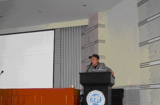 报告会上,周教授首先介绍了实验用到的各种仪器设备和材料选取的依据和意义。他向大家介绍了用Sb诱导形成双联晶的一维ZnO纳米带,以及一维ZnO纳米材料掺Cu、Pb、Hg、Cd等的表面形貌和结构,并详细分析了掺杂对ZnO半导体纳米材料物理性质的影响。最后,周教授展示了自己的研究成果,并耐心地回答了同学们的疑问,以自己的实际经历为大家在今后相关领域的研究提供了借鉴。