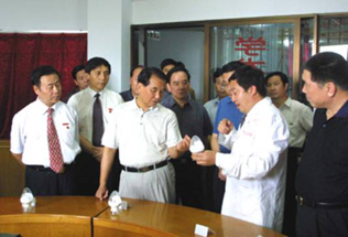 七月六日下午,中共中央政治局常委、中共中央纪律检查委员会书记吴官正在河南省委书记李克强,省长李成玉等省市领导及校党委书记张秉义、校长关爱和、副书记葛运法、赵豫林、副校长周铁项、黄亚彬、卢克平等陪同下,莅临实验室视察。