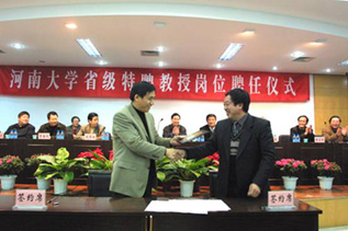 2003年12月23日下午,在我校新办公楼第四会议室,实验室张治军等四位博士从校长关爱和手中接过聘书,正式成为我校历史上首批省级特聘教授。