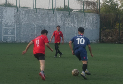 比赛共分为三节,随着裁判一声哨响,比赛正式开始。老师和同学们在赛场上挥洒汗水,积极拼抢,展示着自己的飒爽英姿。“教工队”几次争抢夺球,尽显激情与活力,而“学生队”虽激情澎湃,闯进十足,奈何球技稍逊,经验不足,渐渐处于下风。