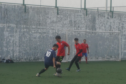 第一节比赛结束后,大家集体合照留念。材料学院院长、特功实验室主任杜祖亮老师为鼓舞学生队热情,临时退出教工队,加入了学生队,并充任场上教练,进行战术指导和组织协调,真正体现了借比赛切磋球艺,增进师生情感的赛事宗旨。在他的指挥带动下,“学生队”士气勃发,渐渐进入了理想状态。中场休息后,下半场比赛开始,赛场气氛愈加激烈。双方球员们都毫不示弱,细腻的脚法,默契的配合,缜密的队形,你来我往,攻防相间,期间出现的精彩射门总能获得场边观众的欢呼与掌声。