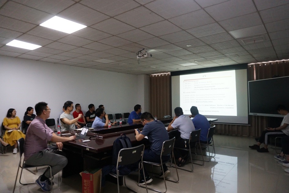 2021年6月3日上午,应特种功能材料重点实验室邀请,苏州大学黄河教授莅临实验室进行学术交流,本次报告会由白锋教授主持,特种功能材料重点实验室相关领域的老师和学生参加了此次报告会。