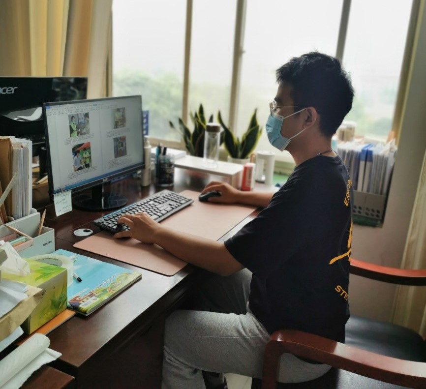 图 吴杰涛在编辑抗疫志愿者采访新闻
