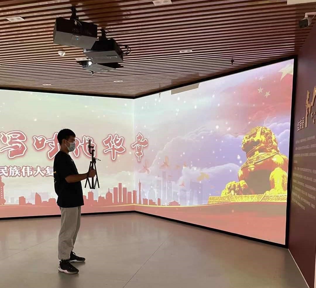 图 吴杰涛进行与北京大学学生线上南乐县抗疫专题讲解的调试工作