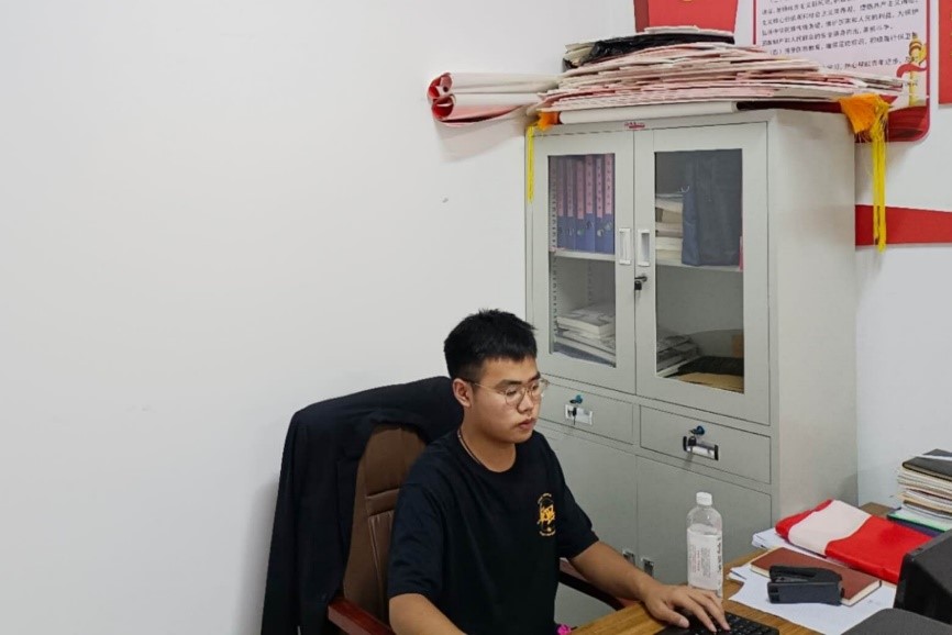 图 吴杰涛在南乐县团委办公室处理抗疫志愿者工作