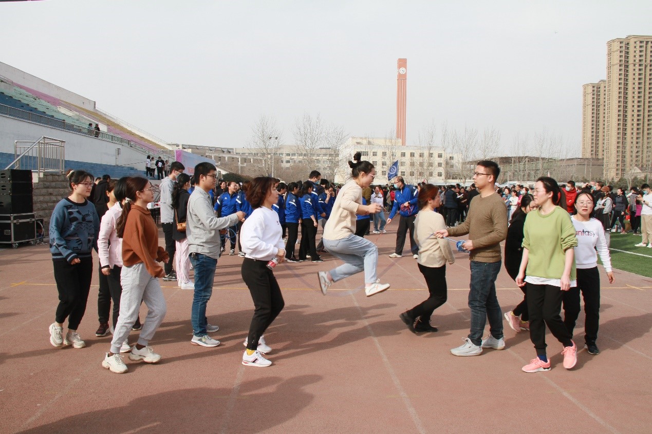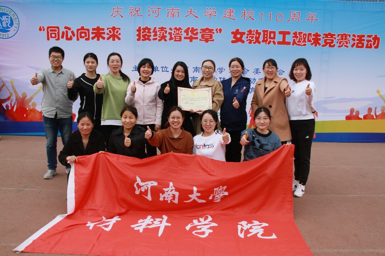 2021年3月3日下午,麻豆a片 金明校区志义体育场热闹非凡,绽放。为庆祝建校110周年、纪念“三八”国际劳动妇女节,校工会在此举行“同心向未来接续谱华章”系列活动——女教职工趣味竞赛活动。材料学院女教职工代表队表现优异,荣获一等奖。