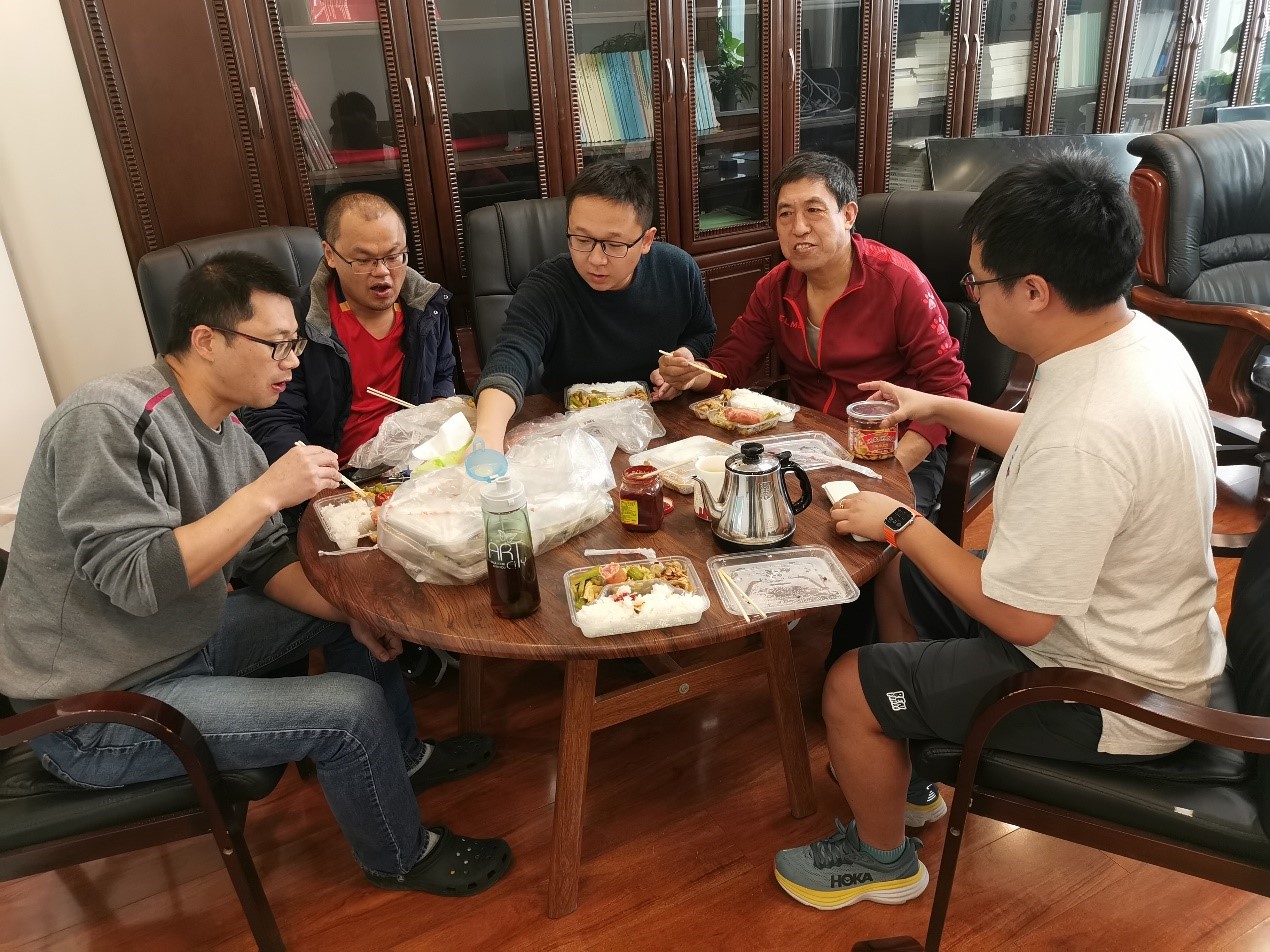 连续几天的工作,大家也都比较疲惫,回到实验室的他们还主动承担起维护实验室大楼安全卫生环境的工作,清理大楼里封控时未及时处理的垃圾。匆匆吃完饭,他们便奔回到自己办公室,充分利用有限的时间争分夺秒开展相关的科研工作。教授们也会利用在吃饭间隙讨论研究进展,交流学术问题,碰撞思想火花。在办公室,他们更加的忙碌,给学生修改文章,和学生讨论课题、组织学生进行文献汇报等等。11月份,是国家自然基金申报的关键期,学院一直有课题组长指导青年教师进行基金撰写、修改的传统,从立意到成稿到提交,课题组长们利用业余时间毫无保留的进行指导。学院近几年基金申报取得的可喜成绩,学院年青人快速地成长,都离不开他们背后默默的无私付出。在材料学院1加1大于2,因为每个1的背后都有一个团队在支撑,可以累加的科研,叠加的不仅仅是科研思维,也叠加了团结与协作,久久为功,才能培育高水平的科研成果。疫情一线的青年教师们也忙着准备自己的文章和基金,到实验室开展实验,帮学生们进行样品测试。大家都通常工作到深夜才回去休息,特别是那几个男老师大多都是忙到很晚就在办公室以沙发为床或支一张简易床就解决了自己的睡眠。