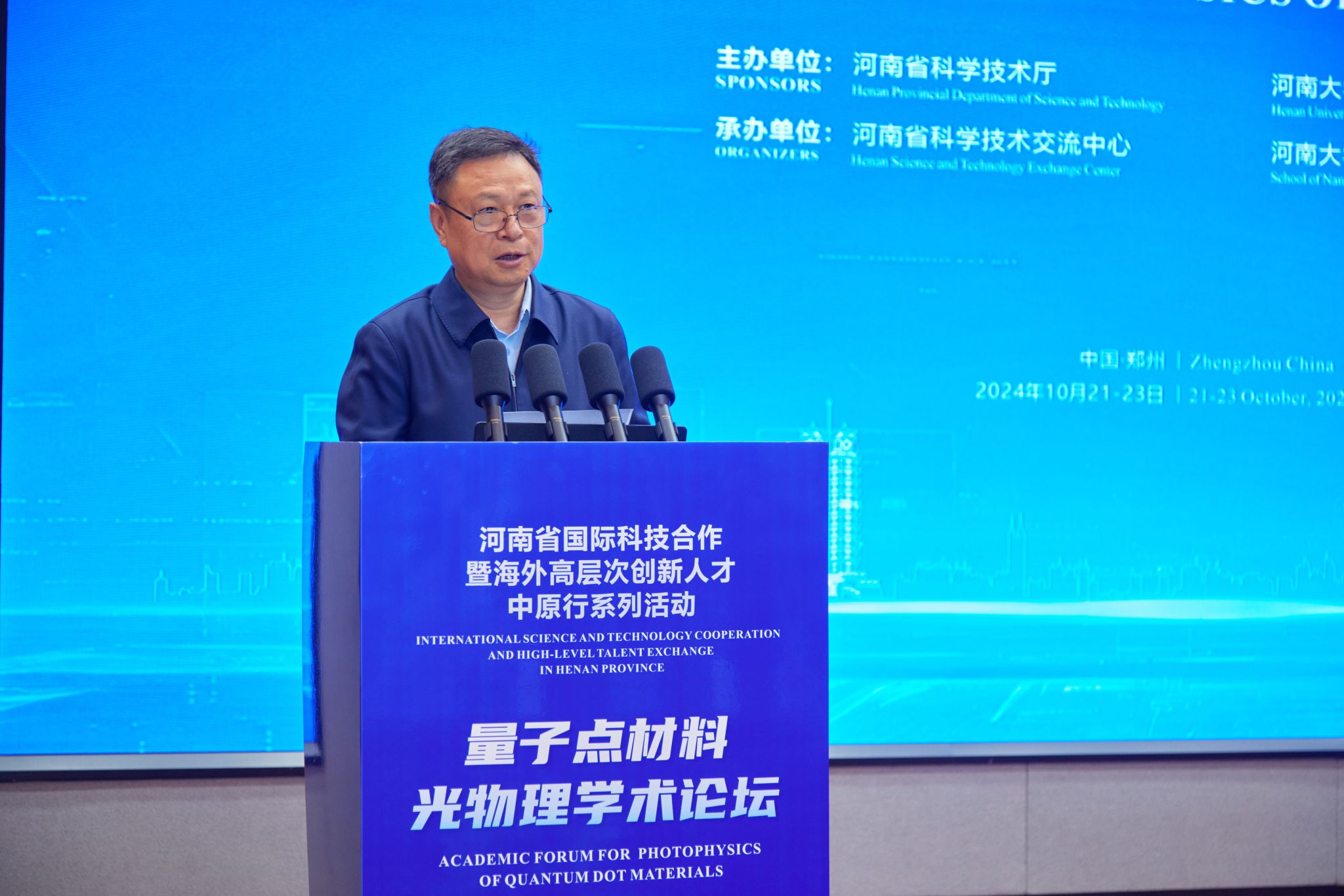 确立了研究型综合性国际化世界一流大学的办学新定位。学校一贯重视国际化建设,积极融入共建“一带一路”教育行动,在国际化办学方面取得了一定成绩,与英国牛津大学等200余个全球高等院校和科研院所建立了合作伙伴关系,构建了国际化开放合作新格局。他指出,量子点材料的研究是学校国际合作的典范,相关团队与国内外专家合作,取得了一系列突破性的原始创新。他希望各位专家畅所欲言,交流最新成果,碰撞灵感火花,促进量子点材料领域的进一步国际交流与合作。