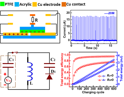 近期,程纲教授课题组的研究成果《High energy storage efficiency triboelectric nanogenerator with unidirectional switch and passive power management circuit》在Advanced Functional Materials上发表。