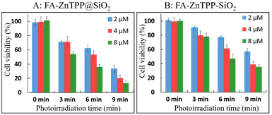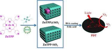 采用酸碱中和胶束限域的方法,通过简单的调节pH影响卟啉的组装速度与TEOs的水解缩合速度,一步法反应成功制备了形貌基本相同,但内部分子组装方式不同的核壳型及共混型卟啉@SiO2复合纳米材料。解决了卟啉水分散性、表面修饰(生物相容性)两大难题。通过进一步的BSA和叶酸的嫁接修饰,实现了对HeLa癌细胞靶向识别,同时实现了荧光标记及光动力治疗双重功能。光照下单线态氧的产率与分子堆积方式密切相关,核壳结构卟啉@SiO2复合纳米材料由于存在长程有序的分子堆积,比共混型卟啉@SiO2复合纳米材料的单线态氧产率高出一倍以上,体现出很好的结构增强性能。并且组装体杀死癌细胞效果远高于卟啉单分子,完美的体现了组装的协同效果。该成果“pH-Dependent Assembly of Porphyrin-Silica Nanocomposites and Their Application in Targeted Photodynamic Therapy”发表在国际顶级期刊Nano Letters上(Nano Letters 2017,17,6916-6921),麻豆a片