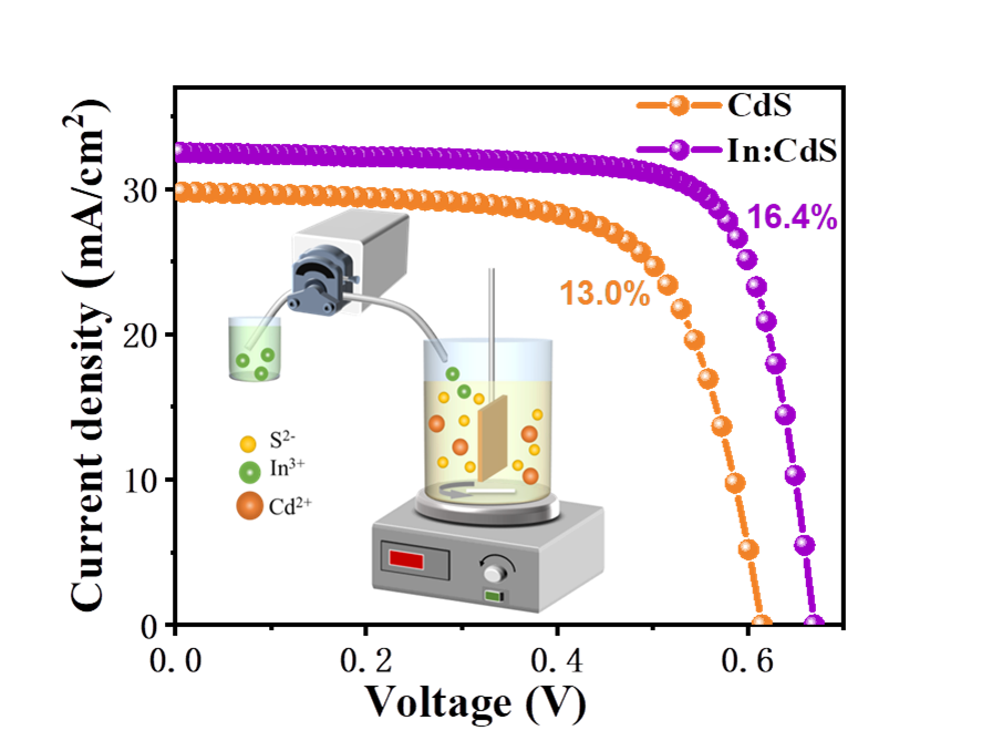 图1. 基于CdS和In:CdS的CIGSSe薄膜太阳能电池的J-V曲线