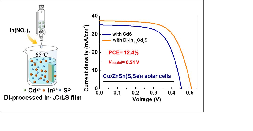 图1. In掺杂CdS的制备方式;基于CdS和In1-xCdxS的CZTSSe器件J-V曲线