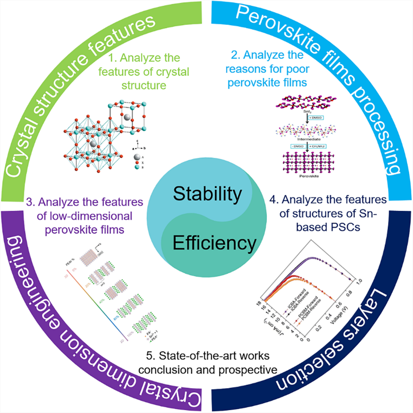 李萌团队以及斯图加特大学Michael Saliba团队于Advanced Energy Materials刊发了锡基钙钛矿的最新综述。在这篇文章中,作者系统地回顾了纯锡基钙钛矿太阳能电池的最新进展,着重于制备和策略,对改善锡基钙钛矿性能的各种改性策略进行了分类。主要对影响晶体稳定性的因素进行了总结,并分析了晶体的物理性质。从薄膜制造工艺、添加剂的选择、低维结构的制备和界面层的选择四个方面对锡基钙钛矿器件的制备进行了详细的总结和讨论。最后,对纯锡基钙钛矿太阳能电池研究领域的现状和未来的研究进行了全面的展望。