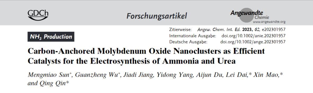 3. 碳锚定氧化钼纳米团簇作为氨和尿素电合成的高效催化剂