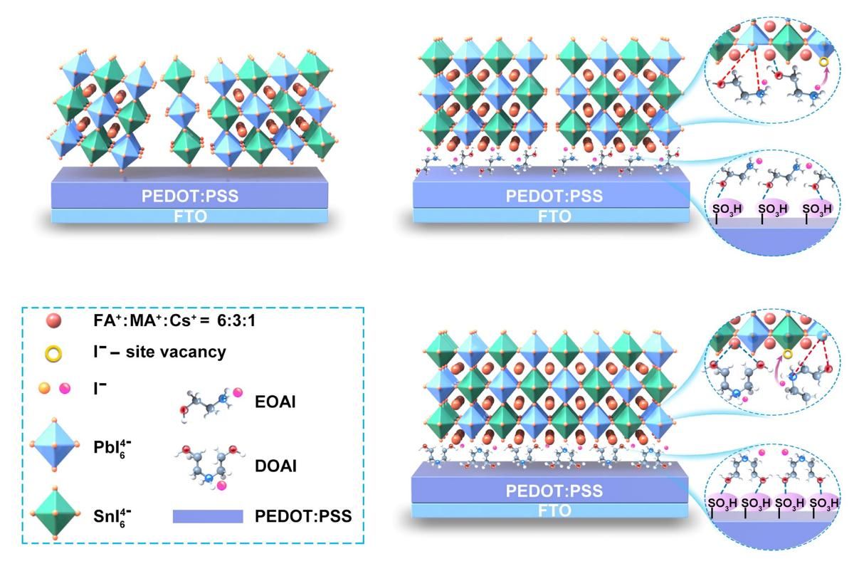 锡铅混合钙钛矿太阳能电池的带隙低至1.2 eV,具有较高的理论效率。此外,锡铅混合钙钛矿可作为全钙钛矿叠层太阳能电池的基础材料。目前,全钙钛矿叠层太阳能电池实现了29.1%的功率转换效率(PCE),有望突破单结肖克利-奎塞尔极限。解决锡铅混合钙钛矿太阳能电池效率损失的根源,可以进一步推进其发展。然而,锡铅混合钙钛矿太阳能电池埋底界面存在的不稳定性和高缺陷密度,极大的限制了其性能的提高。