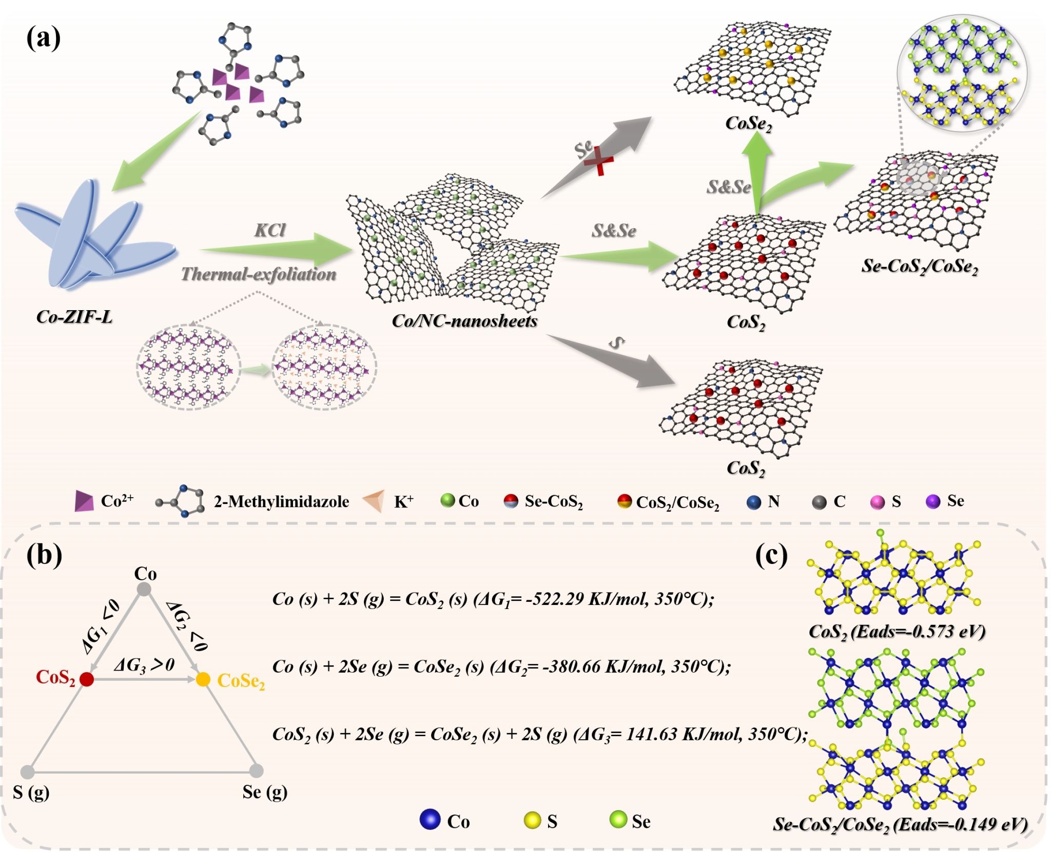 孙自许教授团队报道了一种逐级Se化实现界面与电子结构双向调控的策略,在改善CoS2本征电导率的同时构建的同源钴基异质结显著增强了材料的储钠活性。实验结合理论计算结果证实:一步硫硒化过程中优先形成CoS2组分。随后,Se逐步取代CoS2中的S位点,富Se区以完全取代产物CoSe2为主,缺Se区以不完全取代Se-CoS2为主。得益于这种基于Se-CoS2的电子结构调控和CoS2/CoSe2异质结间的界面调控,优选的复合材料表现出突出的倍率性能和高的储钠容量。该研究为提升低电导率活性材料和新型异质结构的设计提供了思路。