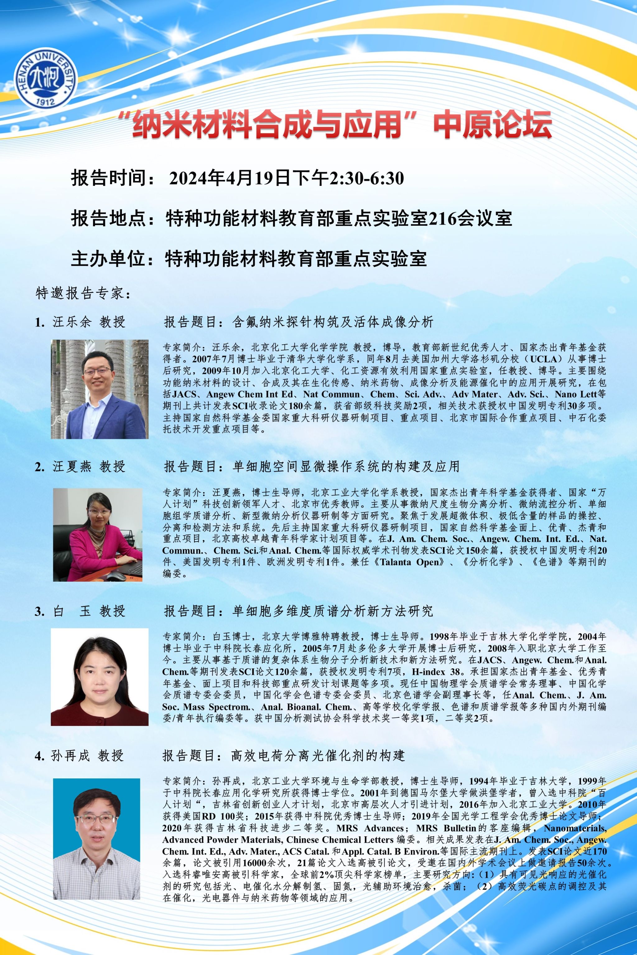 “纳米材料合成与应用”中原论坛(时间:4.19)