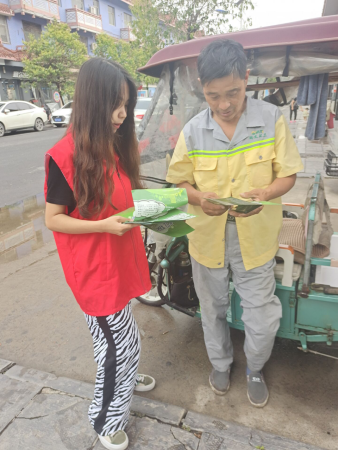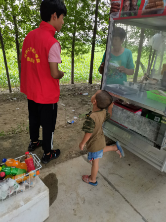 图4 团队成员在给倒垃圾的小朋友讲解垃圾分类