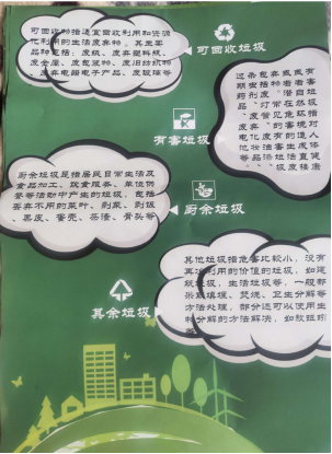 7月14日,本次垃圾分类宣传活动正式开始。由于队员比较分散,团队每天进行一次电话例会,强调外出安全事项和工作安排。7月14日至17日,队员在家乡村庄、城镇展开垃圾分类知识宣讲,宣讲形式主要有街头分发垃圾分类知识传单和村户走访调查垃圾分类情况。7月18日至19日,根据队员实际情况,利用暑假补习班向学生群体宣传垃圾分类。7月20日,团队进行活动总结。