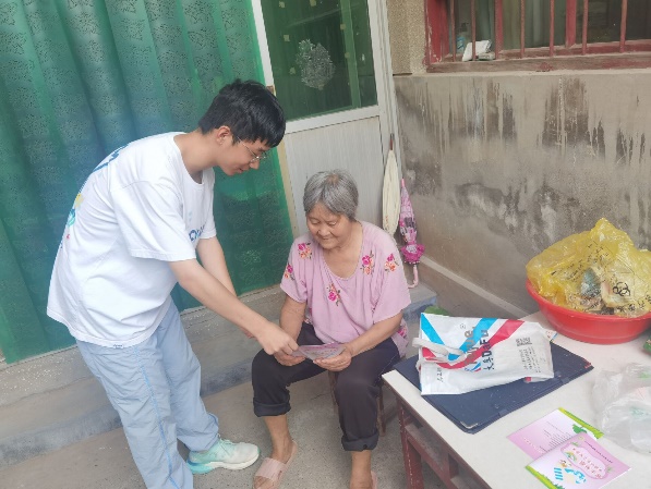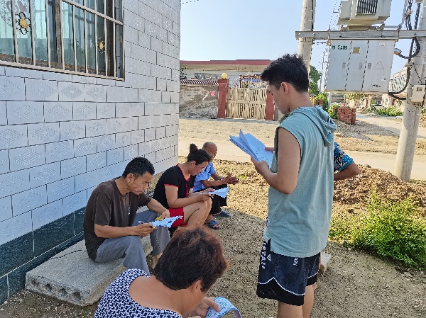 7月15日晚上,实践团队工作会议拉开本次活动的序幕。由于团队成员位于不同地区,团队主要通过社交软件及电话来安排、交流工作,以确保实践活动按计划有序进行,同时也及时了解成员安全信息。7月16日至7月20日上午,团队完成了活动的准备工作,共同商议并整理出宣传册以及用于调研的问卷。接下来,由于天气原因,六名成员于不同时间在附近村落完成了知识宣传及调研活动。在实践过程中,针对村民视力不好,团队设计了大字版问卷,对于一些识字困难的受众,宣传员们为他们口头宣讲,对于一些难懂的知识,宣传员们引用生活中的例子进行讲解,最终圆满完成了宣讲及调研活动。