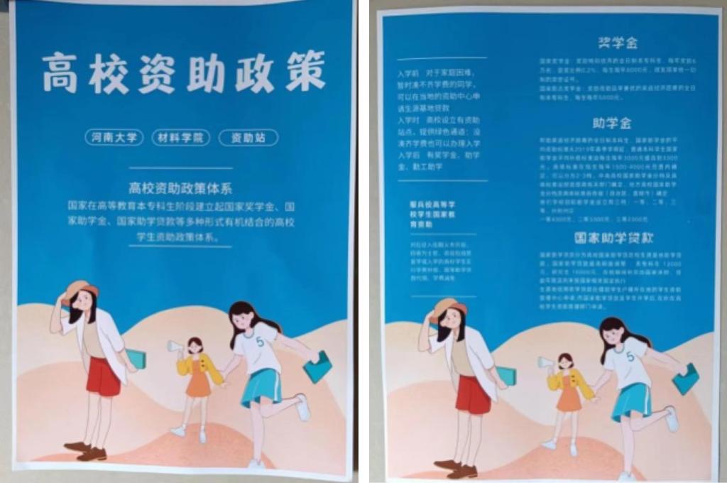 宣讲团走进基层,深入基层,分别在湖南1个城区、江西1个城区、河南3个乡村向学生及家长发放资助政策宣传材料,面对面讲解国家资助政策和我校的特色资助措施,真正将资助政策送到老百姓手里。材料学院资助服务工作站特制作了资助政策宣传页供宣讲团作为本次活动的宣传材料之一。