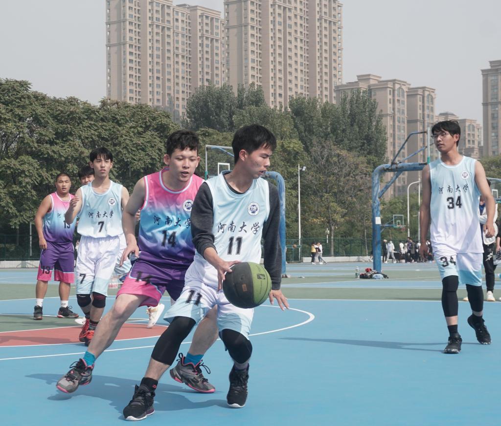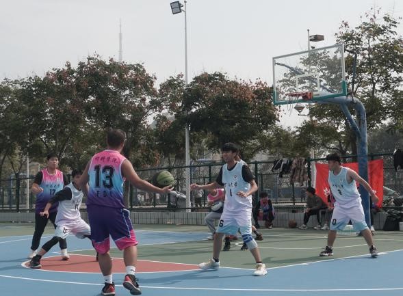 赛前,各球队成员有序进场,互相握手致意。随着裁判的一声清脆哨响,本科生队伍与2020级研究生队伍的比赛率先开始。比赛中,每个球员都不遗余力,竭尽所能,团结一致组织每一次进攻,咬紧牙头争取每一次得分。他们坚持拼搏的精神深深地感染了现场观看比赛的同学,啦啦队欢声雷动,场上场下打成一片,围观同学的激情呐喊为场上的球员们注入了新的活力,使他们以最饱满的热情和最专注的态度投入到鏖战之中。