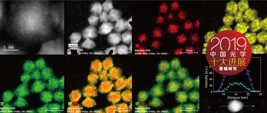 图1 CdSe/ZnSe核壳结构量子点球差电镜和元素分布