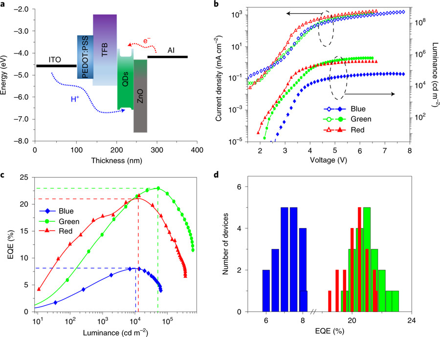 :兼具高亮度和高效率的量子点发光二极管(Nature Photonics, 13, 192-197 (2019))